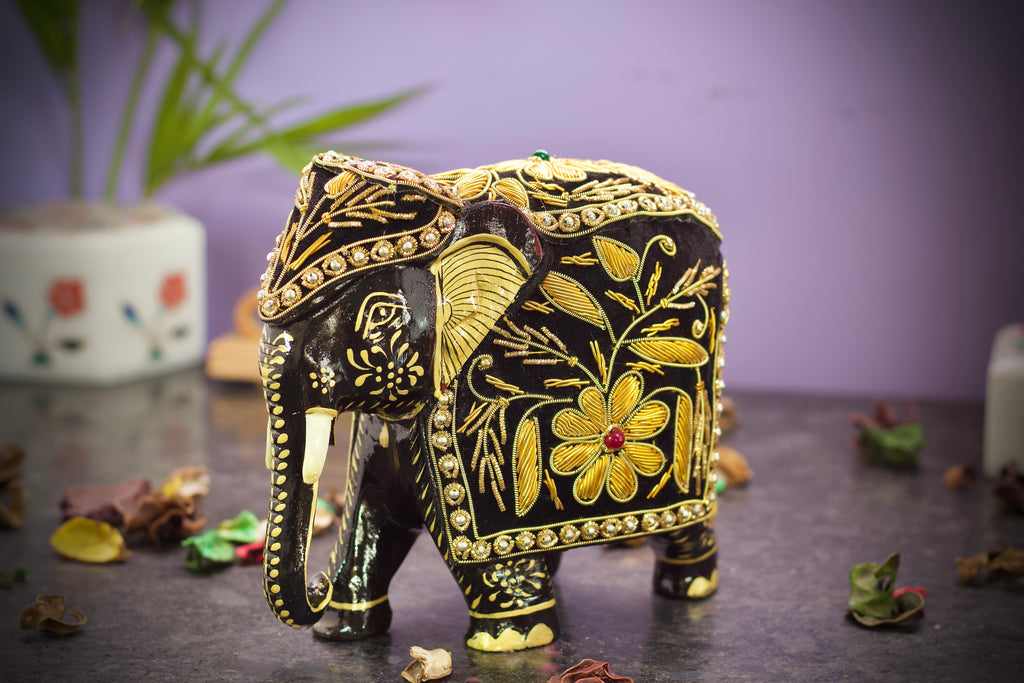 Elephant with ZARI work, wood. Carefully assembled articles made in Rajasthan, enrich your HOME AND OFFICE with this vintage ELEPHANT